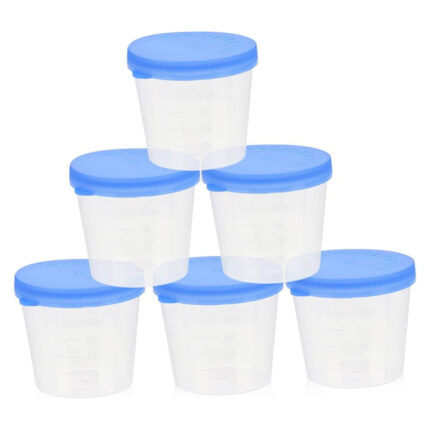Recipientes estéreis para coleta e transporte seguro de amostras biológicas, facilitando os procedimentos laboratoriais.